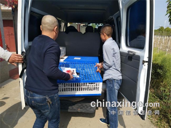 长江公棚接(集)鸽车来我家接鸽 今天,江苏长江国际信鸽公棚接(集)鸽车来到盐城西郊秦南镇接鸽,我和本镇鸽友朱广荣先生共交鸽16羽(其中本人6羽)。此举方便了我们离城较远的鸽友,真是令人满意! 2017新赛季,长江公棚调整了教练队伍,聘请执教公棚十余年、实践经验丰富的教练团队,定能提高训养赛水平,提高鸽友参赛的满意度。上门接鸽,我们交了鸽也安心!