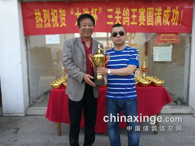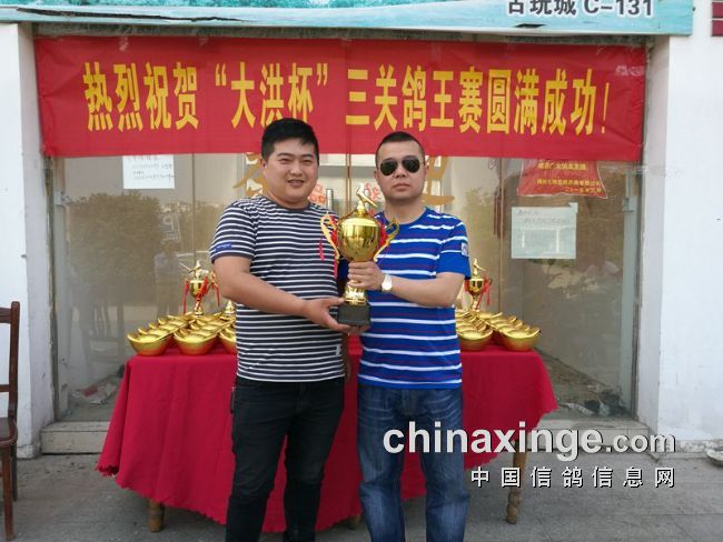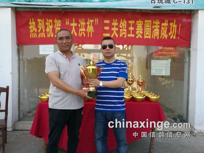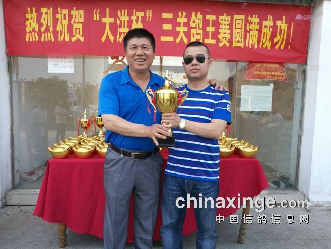 感谢扬州洪园农庄尹文洪董事长对本次大赛的支持!现场2万元现金收购三关综合鸽王冠军、1.5万元收购亚军、1万元收购季军。郑重承诺无论参赛多少,收购价不变!4-10名及其它名次面议,同时赞助本次比赛15樽江西景德镇工艺。