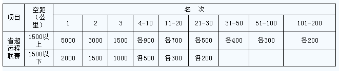 按照规程设置,比赛设置1500公里以上和1500公里以下两组赛事,分别录取200名和30名,奖励方案如下: