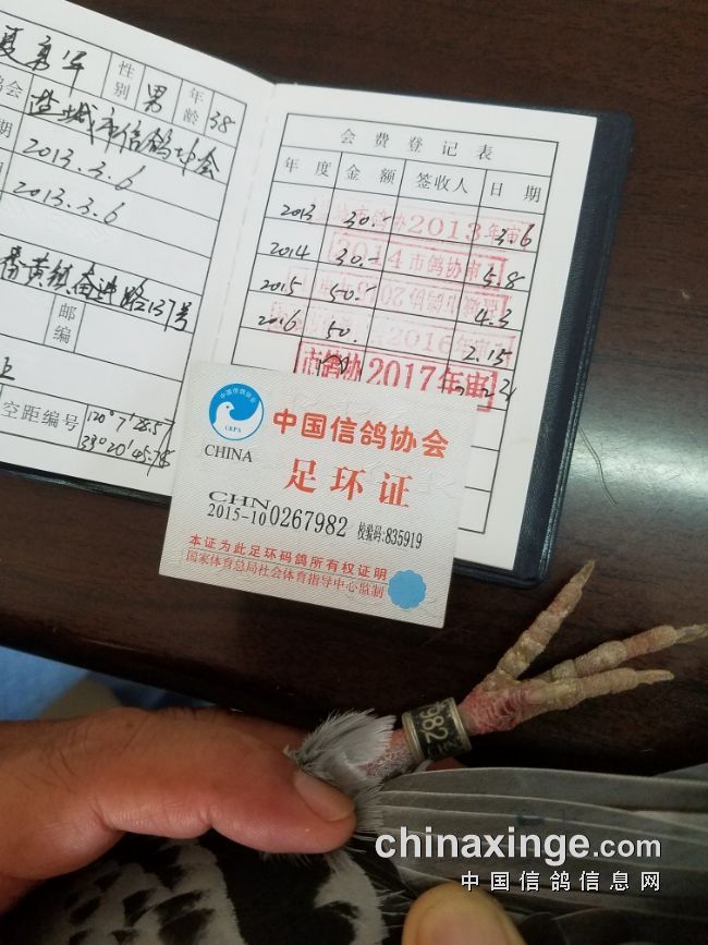 一战到底实现梦想 爱鸽辛苦啦!此鸽16年春500公里大奖赛市50元组特比环40名,17年春600公里国家赛获省51名,1000公里盐城市综合82名,1500公里盐城市季军,7982用它的智慧和永不言败的实际行动证明了自己。