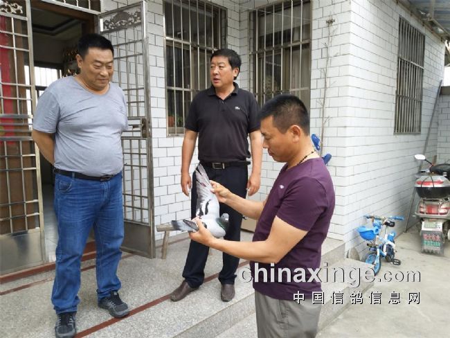资深赛鸽名家王建平先生(中)对该鸽作了高度评价: