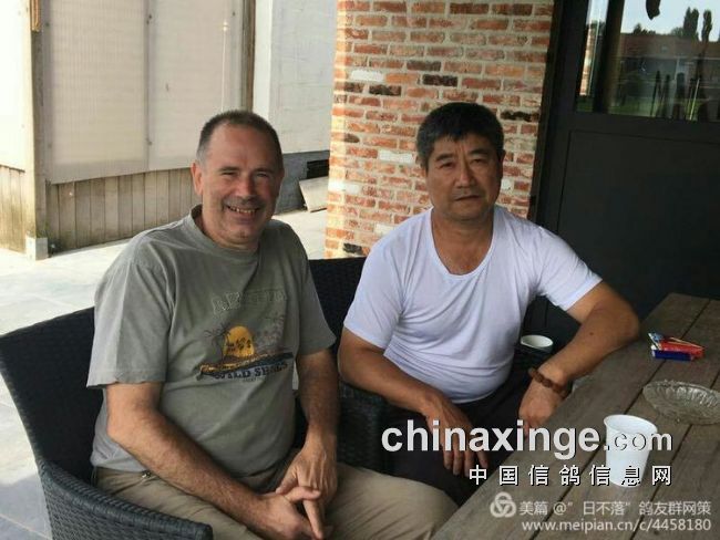 今天和我的老朋友约翰在吉诺家看鸽子,我和约翰联名在比利时比赛,刚刚传来消息,我们飞了省赛2名,哈哈
