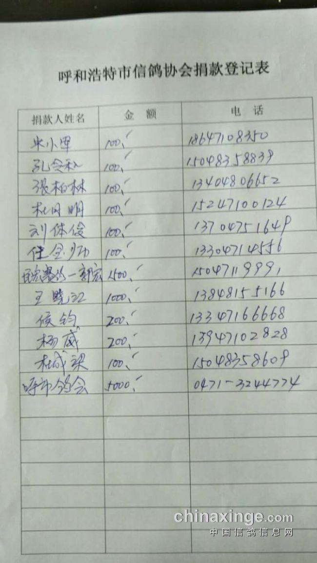9月16日比赛集鸽时,各位鸽友积极响应号召,献出自己的一片爱心。最终,内蒙古呼和浩特信鸽协会筹得善款近三万元。