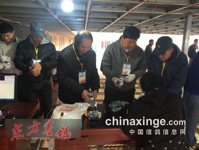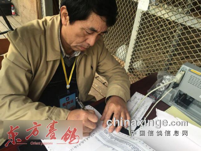 >裁判组一丝不苟地集鸽场景