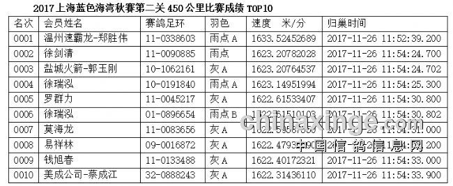 综观本关比赛,浙江鸽友不仅包揽了冠、亚军,并且在前10名中占据了六个席位,是本关比赛的第一大赢家。我们向冠、亚军得主和浙江鸽友表示热烈祝贺!(第10名美成公司-蔡成江先生的鸽子虽然带火车头协会的环号,但蔡先生是浙江义乌赛鸽名家)