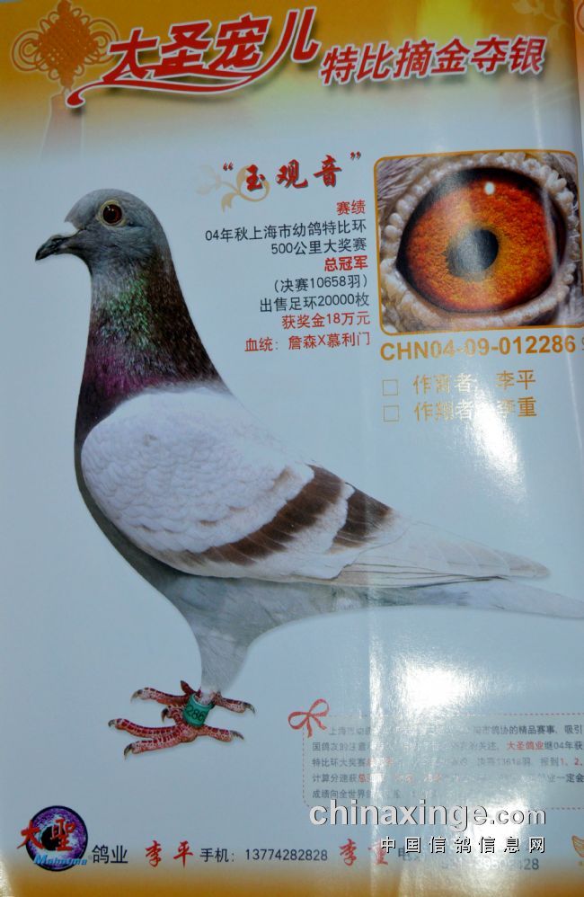 2004年上海市幼鸽特比环10658羽总冠军(参赛地:上海划船俱乐部)