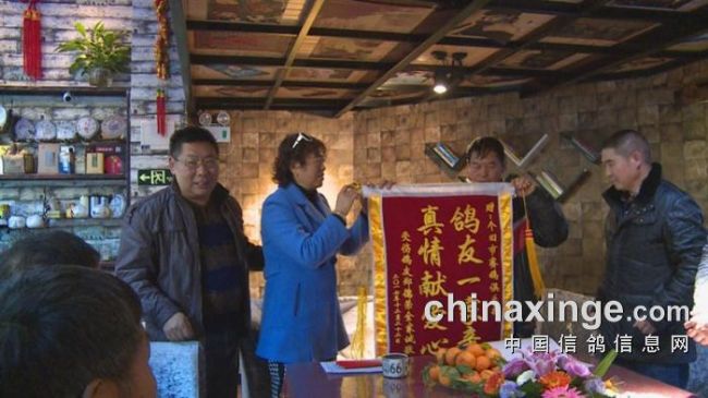在捐赠仪式上,在新闻记者的镜头前,在参与仪式各方代表的共同见证下,由俱乐部领导将全部捐赠款7360元转交给了伤者的家属,伤者家属回赠给个旧赛鸽俱乐部一面写有:“鸽友一家亲,真情献爱心”的锦旗表示感谢,下面是捐赠仪式的部分截图: