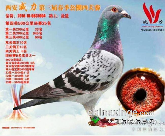 西安威力第三届春季决赛45名,三关鸽王亚军、四关鸽王冠军