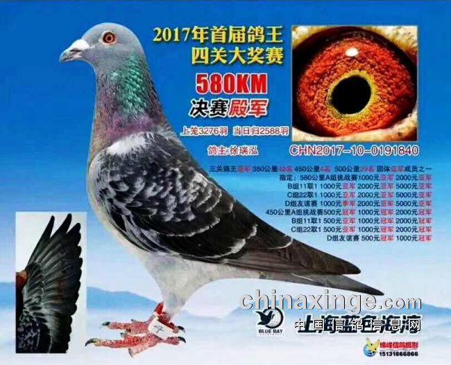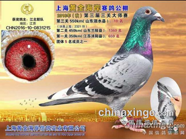上海蓝色海湾首届公棚赛580公里决赛殿军多项指定冠亚军