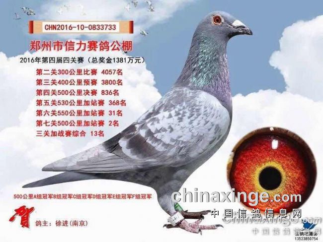 徐进,江苏省南京市人士,在鸽界不扬名,不立万,不显山露水,养鸽时间不长,却打遍各大公棚,硕果累累,可谓养鸽怪才。