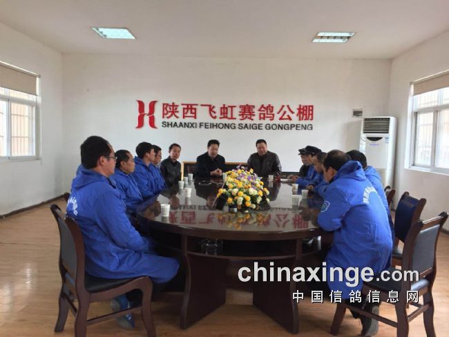省鸽会查棚裁判员们早上七点多从西安乘车到了飞虹公棚,接着召开了查棚预备会议。参加预备会议的还有公棚董事长丁永华、韩小亚经理。陕西飞虹公棚对陕西省信鸽协会领导及裁判员的到来表示欢迎及感谢,另外,介绍了飞虹公棚今年第六届大奖赛的前期准备工作,春季收鸽羽数,饲养管理,强制家飞等情况等做了介绍。表示在省鸽会领导及裁判员的监赛下,飞虹公棚全体员工的共同努力下,力争本届大奖赛取得更圆满的成功。