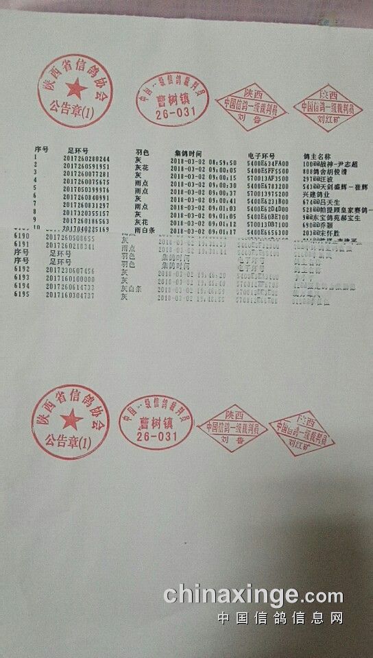 晚上19:48分,省鸽会查棚结果出炉,经过逐羽查验扫描核对,共计参赛鸽6195羽,其中更换电子环3羽。此结果由省鸽会以公告形式在中信网上发布,以此数据为准。