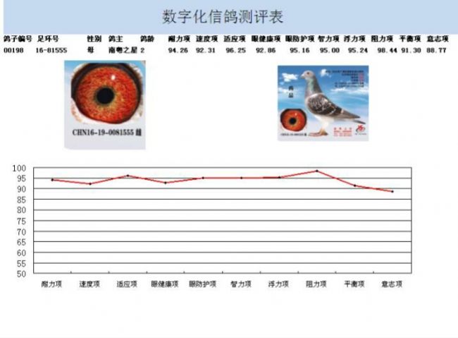 说到底将赛鸽运动与数据分析统计相结合,可谓是:“仁者见仁,智者见智。”就本人而言,始终坚信运用数据做到去伪存真才是数据化的真正意义之所在。前期,鄙人也有在中信鸽网上发表了关于数据运用在赛鸽运动与判别的相关文章。虽才学薄浅,但也勿敢胡编乱造。对已发表过的文章既受到鸽友们的赞赏也得过抨击,同时也接到过鸽友的提问与质疑。对于赞赏与抨击我唯有安然处之,而对于鸽友的提问与质疑本人责无旁贷,义无反顾地将为其解惑。为了更好的体现数据化分析的意义与更清楚地让鸽友解开之前心中的疑惑,我提供一些鸽子的图片以作分析对象,运用数据测评系统测评出数据。并以其作为实例和大家分享,探讨。