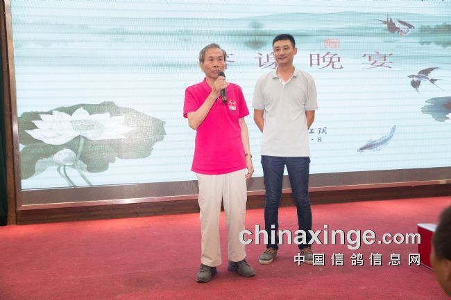 老前辈张顺奎先生作了即兴讲话,他见证了中国信鸽事业的逢勃发展,表示只要能走动仍然和大家一道呵护好信鸽事业的发展,并祝参会嘉宾在云外水庄赛出好成绩,奖金多多,快乐多多。