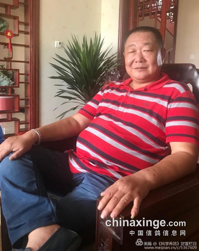 京东燕翔国际赛鸽中心董事长李金奎在办公室接待大厅。