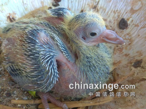 幼鸽成长速度很快,以两者的品系特征分析,白鸽子代多数在幼鸽起,成长速度较快。而大红砂会在一段时间内生长稍慢。由此可见,这羽幼鸽在体质方面是遗传了白鸽的基因。