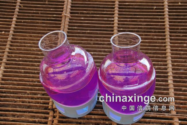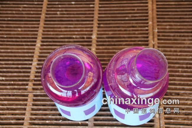 白天,可以看见桶里的彩色饮水,那是加了保健品的饮用水,以此增强鸽子的体魄,提高免疫力。