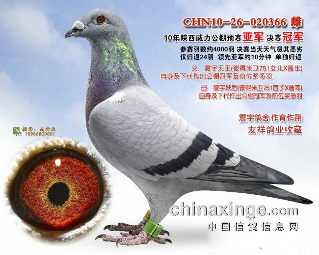 第二、以荷兰不分距离鸽王冠军751定棚,在公棚基础鸽的选择上,从战略上就棋高一筹。鸽王751,是世界著名赛鸽家米卫,黄金配对罗密欧与朱丽叶的杰作,更是短、中、远程荷兰全程赛飞的王者。雄系过桥鸽,威力公棚6名,亦为盖比名血作出,这羽公棚6名,子孙鸽,多羽夺得西安各公棚冠军、前10名。两系杂交所出冠军之父,又为京港公棚决赛90名,祖父、父亲均是公棚大浪淘沙后的黄金,震宇鸽舍大胆连用,公棚前奖鸽做种,印证了公棚前奖鸽,能再出公棚前奖鸽,确是公棚夺奖的捷径。