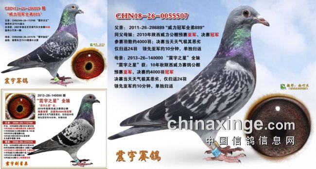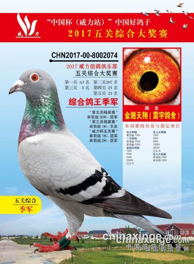 第三、震宇鸽舍的惊人赛绩,是建立在超人的战略决策和完美的战术、技术运用之上的成功。同时也证明了我国鸽友赛鸽技术整体水平,已经与世界赛鸽高水平接轨的事实;更证明了我国鸽友经多年努力,已找到并有能力延续黄金种源的事实;震宇鸽舍科学地制作出高水平的,种放兼用鸽夺得大奖的事实,是可喜可贺的。