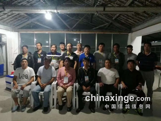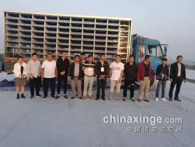 前排中间三位是裁判组工作人员,右边二位是驾驶员,其余是监赛鸽友和自发参加监赛的鸽友。