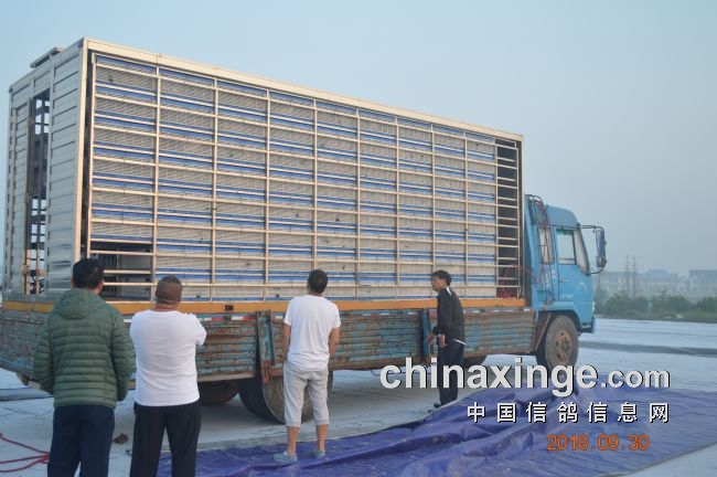车队于9月30日零时40分出发,3点57分到达目的地。这是早晨6点钟准备司放前情景。崇明鸽协秘书长龚德新和监赛鸽友在查看每一个细节。