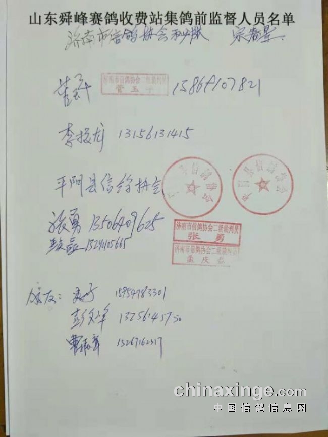 山东舜峰赛鸽公棚100公里收费站于11月3日7:18开笼,共计6483羽参赛鸽,走势良好!天气多云,东风2级,司放地经纬度:E116°15′48〃,N 35°17′54〃。济南市信鸽协会、平阴信鸽协会及鸽友代表监督比赛集鸽、入笼、训放全过程,济宁市信鸽协会会长张桂刚、嘉祥信鸽协会会长张国勇监督放飞,泉城风云赛鸽传媒将在中信网直播室进行视频直播,敬请关注!