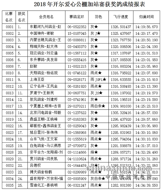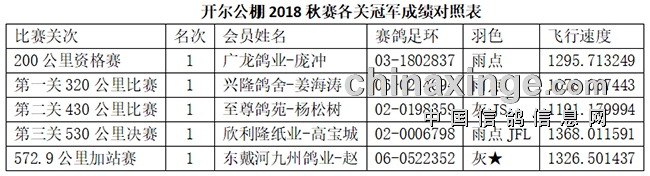 热烈祝贺在开尔公棚取得佳绩的所有鸽友,热烈庆贺开尔公棚取得本赛季所有比赛的胜利!