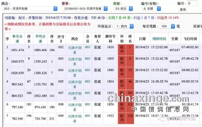 原本昨天(4月22日)开笼的开创第二关比赛,天津开创俱乐部发布公告天气原因决定压笼一天。(详见天津开创俱乐部公告)