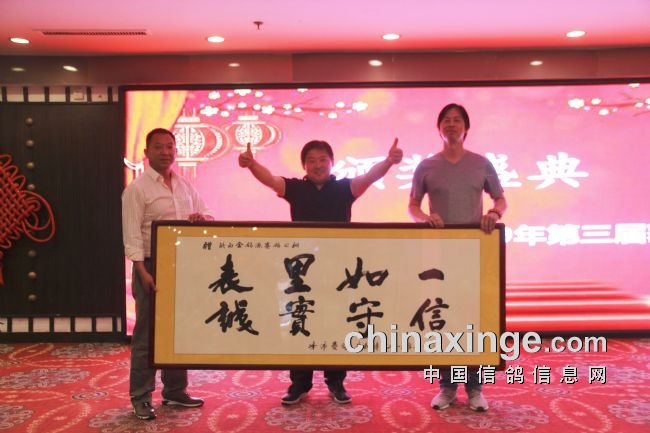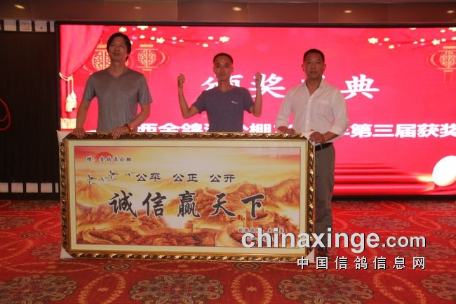 之后有两位鸽友给金鸽源春棚送去了赞美牌匾,“表里如一诚实守信”、“公平公正公开 诚信赢天下”,金鸽源春棚充满了公平和诚信之誉,在鸽界竖起了楷模。与会者再次感谢金鸽源春棚,感谢你们对我们爱鸽的悉心照顾,感谢陕西咸阳信鸽协会的“公平、公正、公开”监赛。今天,我们有幸相聚在灯火通明、富丽堂皇、金光灿烂的盛典,感谢金鸽源春棚提供了这么好的平台,让我们荣耀地走进崇高的赛鸽殿堂,共享赛鸽带来的幸福快乐和这一年来的付出和收获。鸽友频频举杯共同庆祝金鸽源春棚今年大奖赛胜利圆满,让我们明年再相聚在这里,共享金鸽源春棚下一个辉煌,分享更美好的未来。