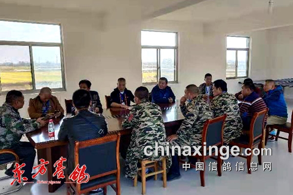 ↑裁判长梁波召开集鸽 前会议,宣布执裁纪律。