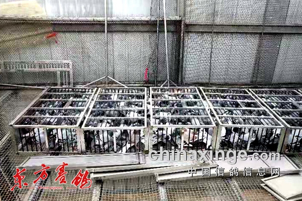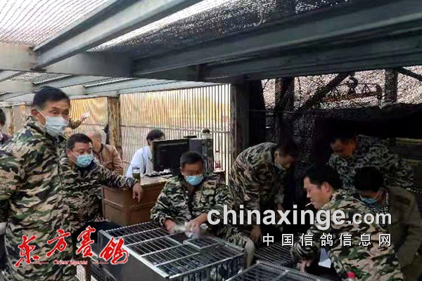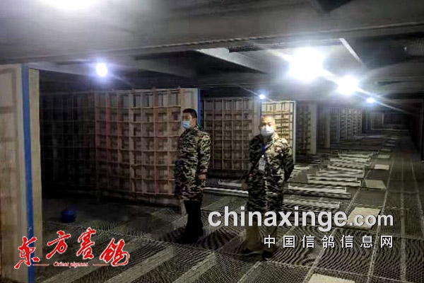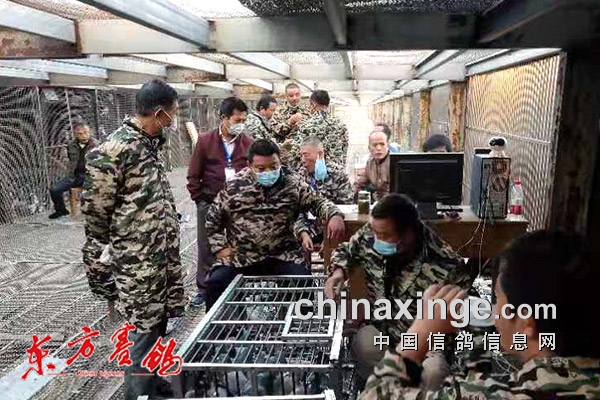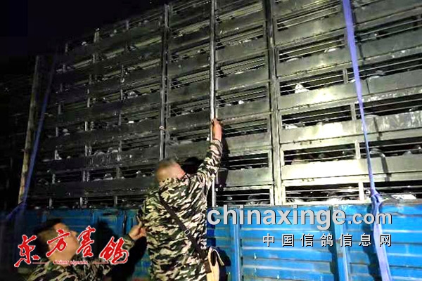 ↑验鸽上笼紧张有序。
