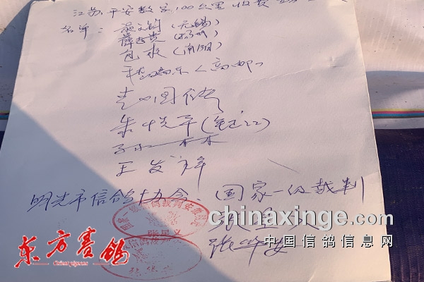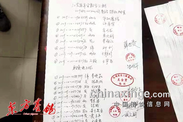 平安数字公棚还注重比赛的三公,除了由扬州市信鸽协会监赛外,还邀请鸽友代表全程监督每一关比赛的集鸽司放。本站收费训放,他们邀请70公里比赛获得8名施文军、28名吴宽猛、58名江苏迪生集团*李春江,88名包爽,188名薛志贵,888名华泰驾校*金以龙*王发祥全程参与监赛。
