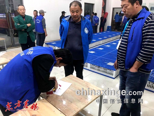 ▲无锡市信鸽协会对本次比赛专用易碎贴、暗章、赛鸽车铅封一式三份,由抽签教练随机抽取一份,作为本关比赛专用