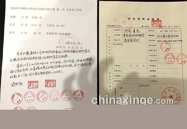 2019年“中国杯”信鸽职业联赛(云外水庄站)第四届四关鸽王大奖赛第一关450公里于10月23日上午07:45分在河南夏邑开笼。17舍2112羽名家铭鸽精神抖擞地参与了本场比赛,它们不仅要争夺本关的50个进奖名额,更要尽力飞出个好名次,为最终称霸鸽王抢得先机。