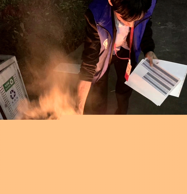 ▲现场焚毁多余的易碎贴,记号章等资料