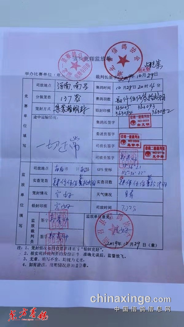 湖北襄阳一景公棚2019年秋第五届四关大奖赛首关160公里比赛10月29日早上7点22分在河南南阳南召开笼,4532羽一景健儿角逐了本场比赛,力争跻身前50名之列,为鸽主带来荣誉和奖金。