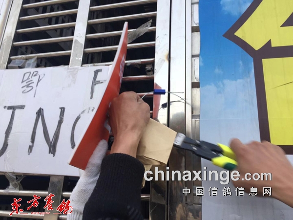 ▲给每羽参赛鸽贴易碎贴