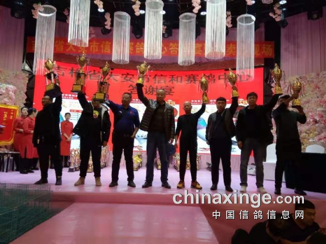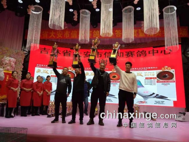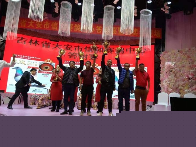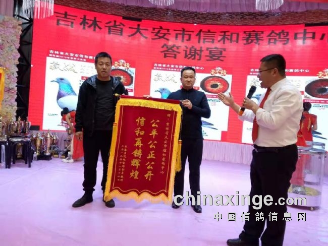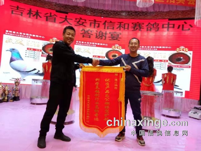 加站赛奖鸽拍完后,进入了颁奖环节。分别为2019年度大安信和公棚单关、鸽王、特比环及团体的获奖鸽友颁发了奖杯!参赛鸽友为大安信和公棚赠送了锦旗!大安信和公棚李董也为爆灯鸽药赠送了锦旗。