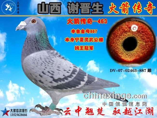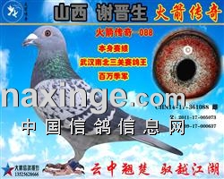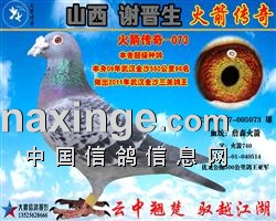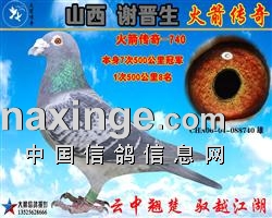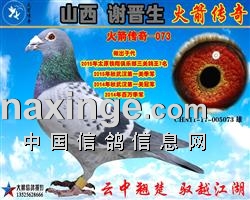 良鸽皆由名血生,四大金刚显神威。但使龙城火箭在,敢教群雄竞折腰!火箭传奇家族的主人谢晋生,以早期引进的“詹森小火箭C97-147667为棚中主血,罗杰富雷卡老红鬼072、桑杰士916和冯莱尔917为辅血,强势融合重组,通过多年的赛场磨练和呕心沥血的培育,最终形成了一支晴天脱群归,多关整群到,恶劣天气获伯马的高智商战鸽队伍,因而被龙城鸽友冠以“火箭传奇”的美誉。“小火箭、桑杰士、罗杰富雷卡、冯莱尔”这四路鸽系成为谢晋生棚中的“四大金刚”,共同书写了火箭家族的许多传奇故事。