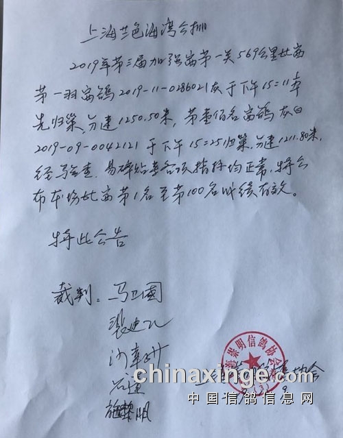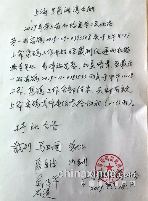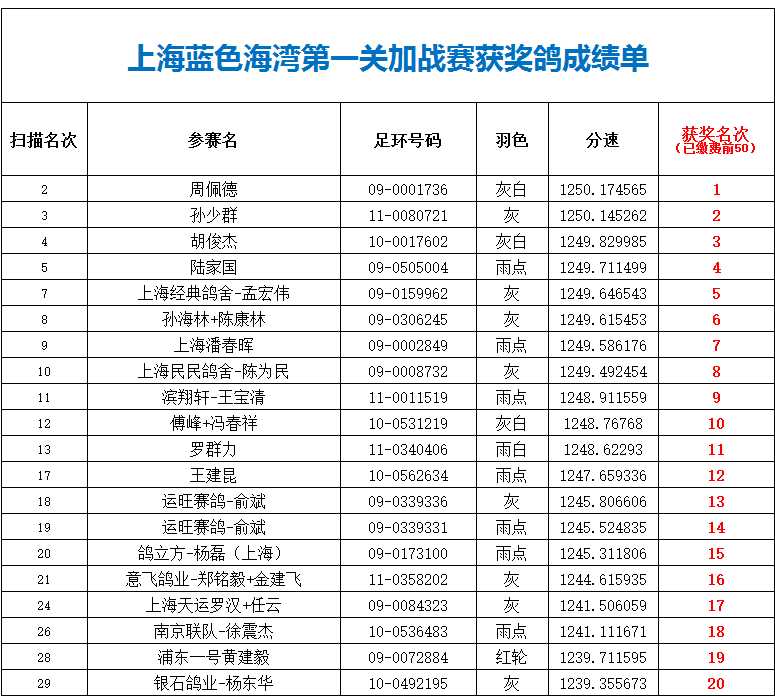截至发稿,上海蓝色海湾归巢272羽赛鸽……加站赛双关鸽王成绩,请稍后到上海蓝色海湾网站查询。