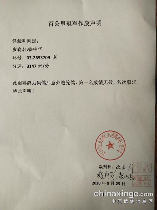 用来作弊的鸽子拿出来看来,不小心跑了,此时发布声明已经来不及了。
