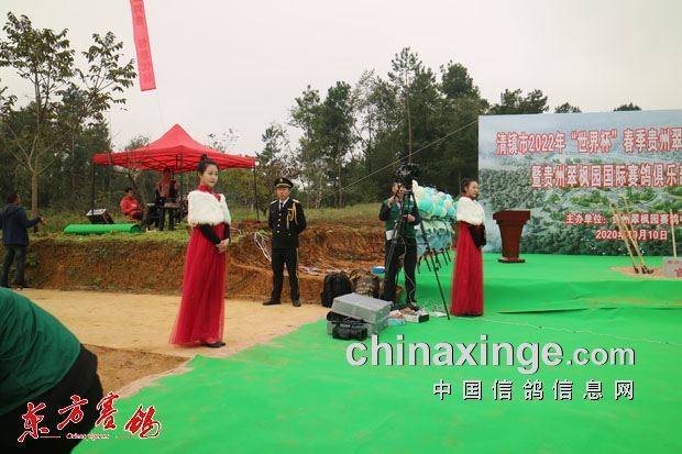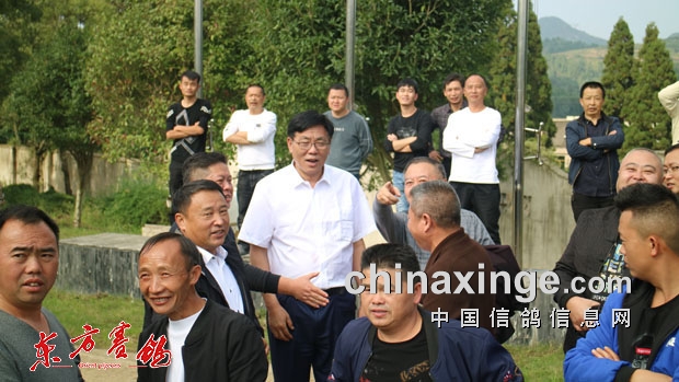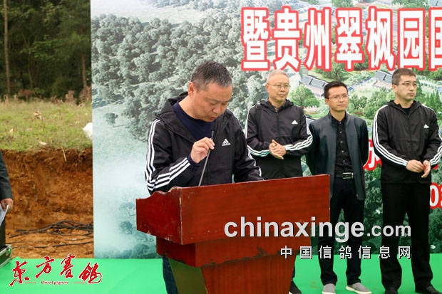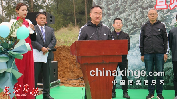 中国信鸽协会会长邢小泉致辞:今天我非常高兴,在贵州与城市距离不远山村里参与翠枫园赛鸽俱乐部的奠基仪式,抬头看看四周,到处都是青山绿水。