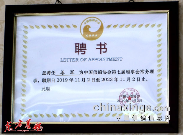 另外,每一个赛事运动都有自己的体育理论,运动理论,中国信鸽也要加强这方的文化建设,还有因为你有历史有发展轨迹,那就离不开博物馆建设,我考察了好多地方,也有很多人跟我谈过建博物馆,原来我想在北京也建立一个赛鸽文化博物馆,但是真正行动是姜军董事长并介绍他们的规划,准备建设一个建筑面积约5000平米的博物馆。这个博物馆就是烧钱的,我昨天也跟省里面市里面政府的领导谈了,贵阳市、清镇市政府对这个事情很支持,他们从体育这个角度,向国家体育总局申请,向省体局申请,包括它运行的经费,他们都在全方位的考虑,我觉得这个对中国信鸽运动文化建设是一个非常重要的一个着力点,所以我也很期待,我也很期待这样的一个壮举能够成功,这将会对中国信鸽文化的提升起到促进的作用。中国信鸽运动的发展不仅仅是比赛啊,也是体育文化的发展,特别是文化建设,中国信鸽运动对社会文明的建设起到了推波助澜的作用,去年北京市信鸽协会,在国庆70周年大庆的时候,在最后十分钟,我们的信鸽承载着和平飞上天空,在每年12月13日“南京大屠杀死难者国家公祭日”纪念活动中,南京市信鸽协会按照市政府安排,积极调集各区一批信鸽在活动结束后放和平鸽,已经连续坚持了很多年,所以北京市信鸽协会及江苏省南京市信鸽协会都成为我们“凯旋奖”的特殊贡献奖,这就是我们着重抓文化建设的一个重要的体现啊。