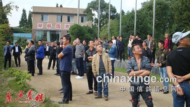 ▲10 月10日也是翠枫园240公里比赛日,现场,中国信鸽协会邢小泉会长向在场观赛并夺奖的鸽友表示祝贺