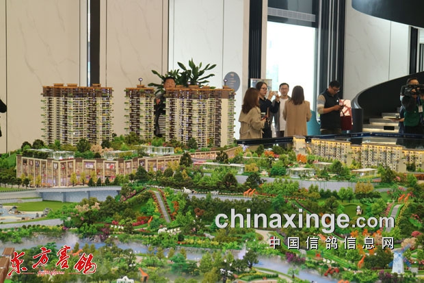 ▲邢小泉会长等嘉宾兴致勃勃地听取了姜军董事长介绍新开盘的清镇湖湾商品房发展情况