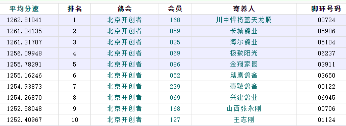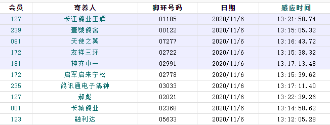 截至下午14点10分,比赛已归巢1400多羽,归巢率已超70%。以下是前十报到数据,最终成绩以俱乐部公布为准: