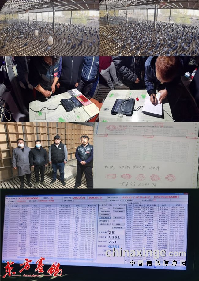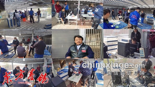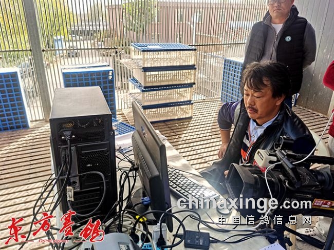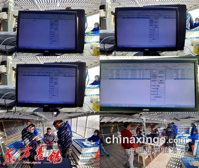 裁判员对集鸽工作确定及展示现场上网直播扫描数据