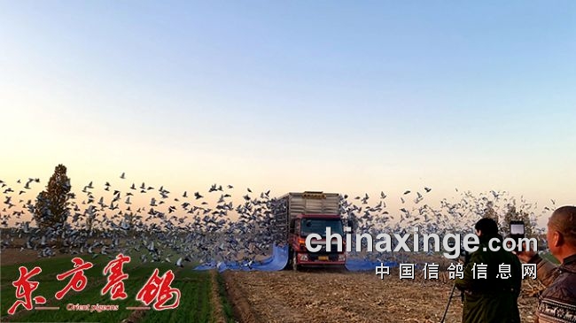 11月8日,是华顺德公棚330公里热身赛比赛的日子,放飞地在河北邢台,清晨旭日初升,阳光无力,微风中透着立冬后晨寒的清冷和干涩。六点刚过,司放人员各就各位,实地司放长接过监放单,并对空旷的田野里候赛二辆赛鸽车进行了铅封、上锁及赛鸽车安全情况一一进行了确认完好无损后,一切放飞工作准备就绪,7点整,随着裁判长一声令下—— “开笼”,6251羽赛鸽在鸽车左右两边夺路而出,在天空盘旋几圈后,迎着晨曦踏上归家之路。纵观整条赛线今天天气状况良好,没有雾,能见度较高。