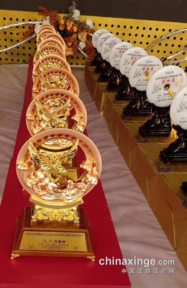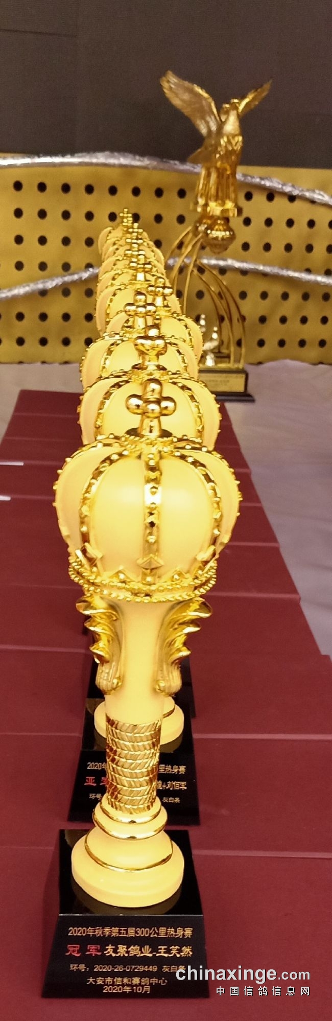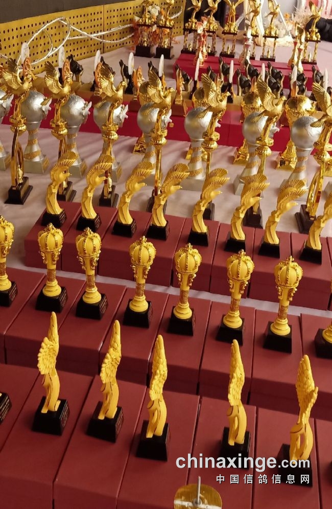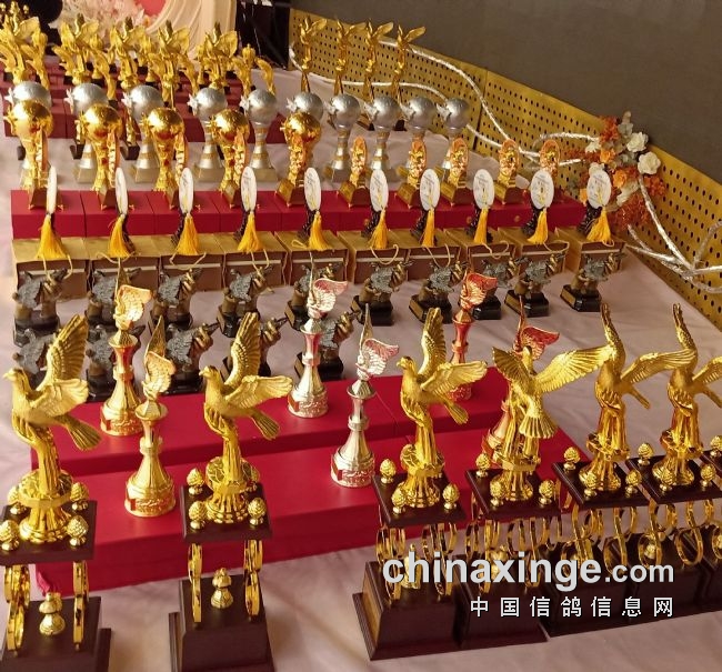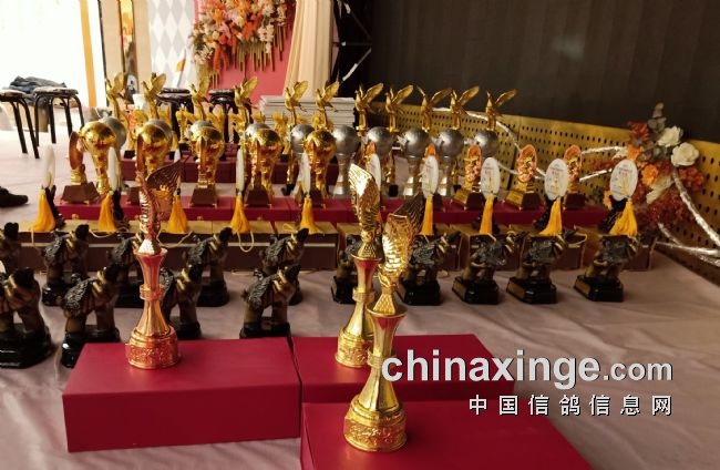 主席台前面摆着做工夸究,高大气派的奖杯,漂亮的获奖鸽巨型照片也摆在主席台上。