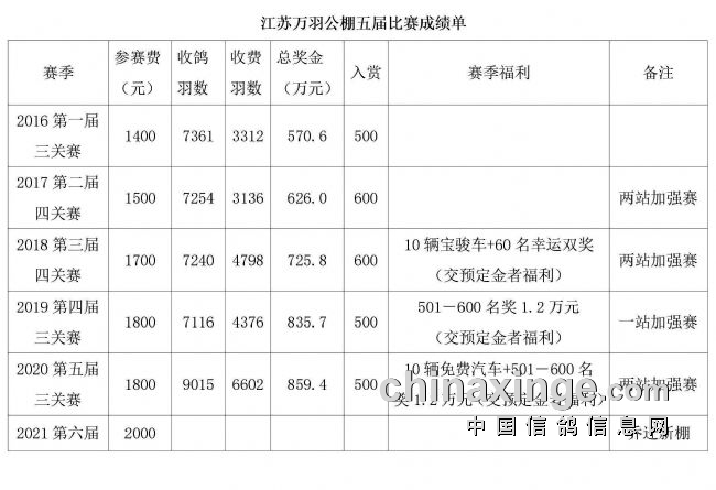 最后,我们整理出了万羽公棚五个赛季的数据,供鸽友作个参考。谢谢你的阅读!
